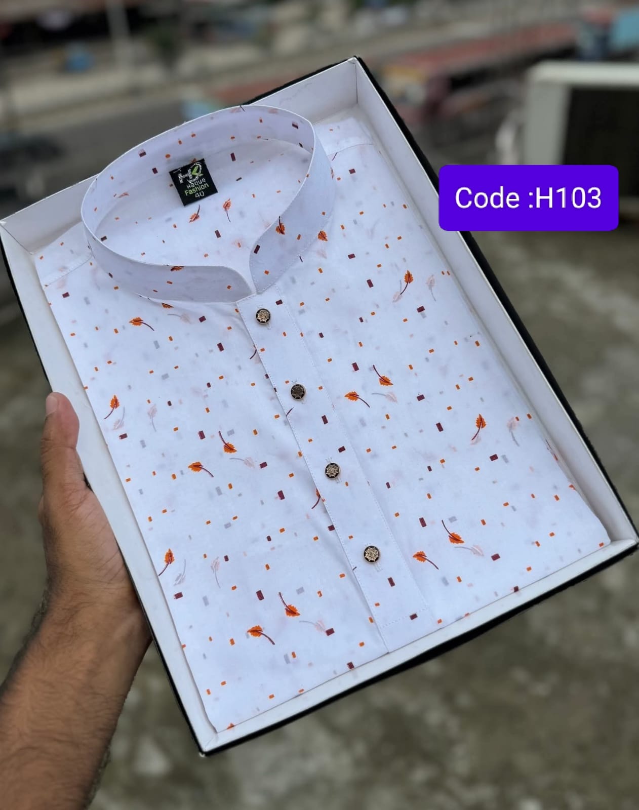 এইচপি ধুতি কটন কাপড়ের গোল্ডেন পাতা প্রিন্ট পাঞ্জাবি।