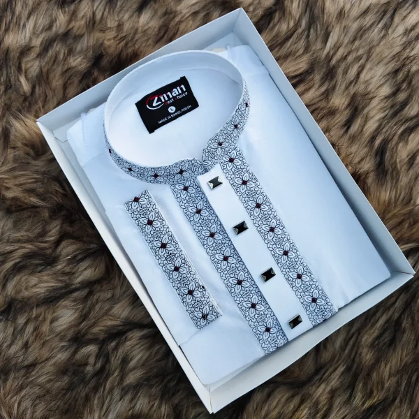Zafran Fabric Premium Embroidery Panjabi (White)